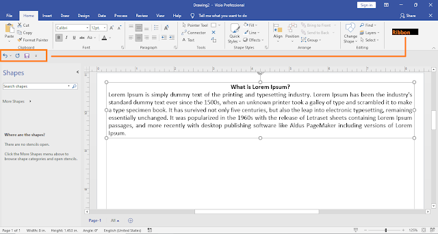 Note: We can place the Quick Access Toolbar above the Ribbon as below as the below the Ribbon in Microsoft Visio.